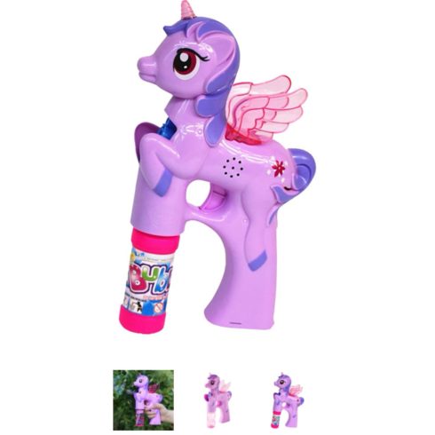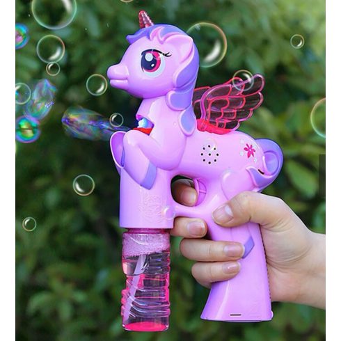 A buborékfújó pisztoly egyszerűen használható, 2 patron jár hozzá.