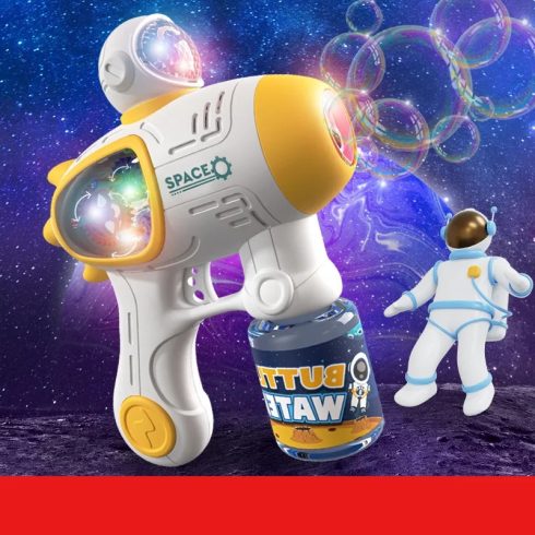 A buborékfújó pisztoly egyszerűen használható, 2 patron jár hozzá.